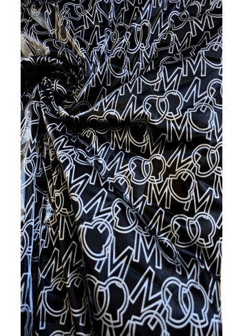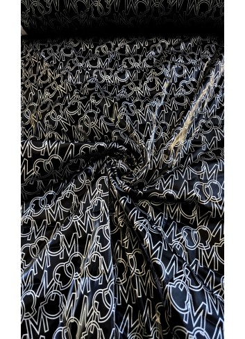 Pevnější italská látka plášťovka v černé barvě s vetkávaným monogramem ve stylu módní značky ARMANI. Materiál skvěle drží tvar, téměř se nekrčí a má tendenci se vyrovnat. Italská kvalita, voděodolná, super gramáž, vyrobeno pro značku ARMANI.