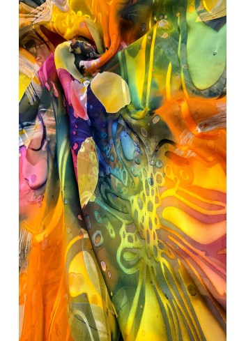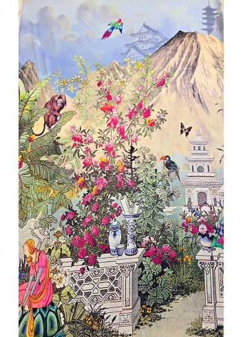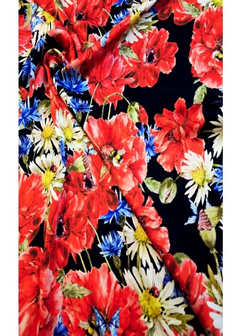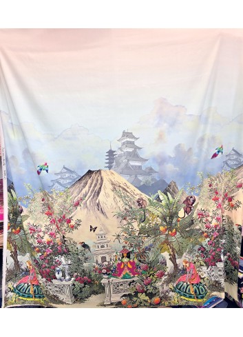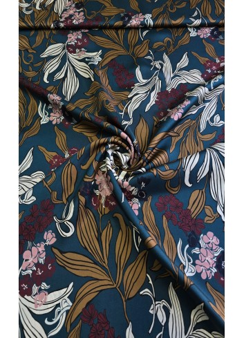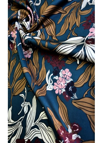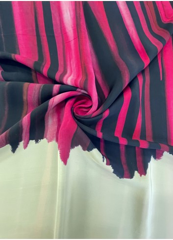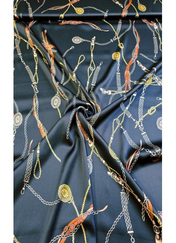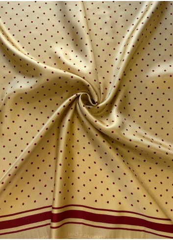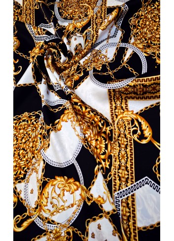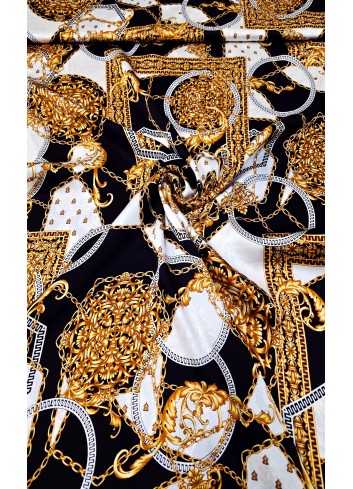 Krásná látka z italské produkce, vzor ve stylu módní značky DIOR. Hedvábná lehounká látka, splývavá, neprůsvitná a mírně elastická, dobrá gramáž. Vyrobeno v Itálii, top kvalita. Jedná se o panel o šíři 140 cm a délce 140 cm, objednávejte tedy prosím celou délku panelu a jeho násobky, tj. 140cm, 280 cm atd.