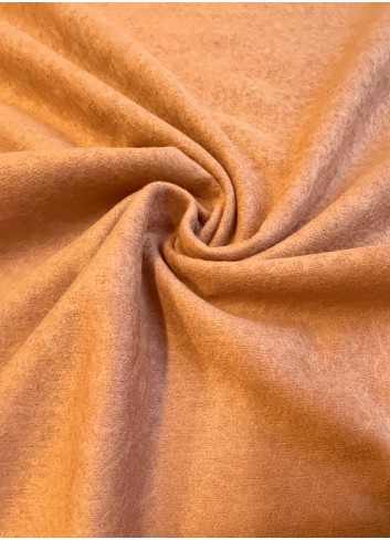 Vzorovaná látka s květinovým vzorem a motýly na světle meruňkovém podkladu , elastická na obě strany, lehounká, příjemná, splývavá, téměř neprůsvitná, rychleschnoucí a málo krčivá.