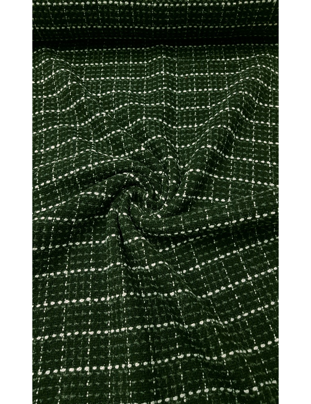 Italská tvídová luxusní látka typu chanel v černobílém káru, střední gramáže, příjemná na dotek, poddajná. Vyrobeno v Itálii z přírodních vláken, teplý a příjemný na nošení. Velice elegantní.