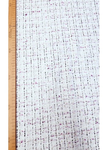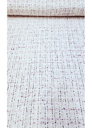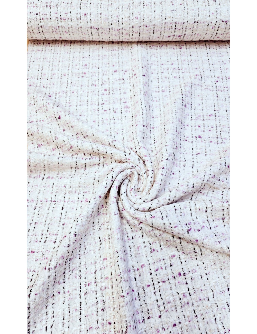 Italská tvídová látka typu chanel, střední gramáže v krásném provedení z přírodních vláken v šedo fialkové barvě, příjemná na dotek, a měkká. Vyrobeno v Itálii, velice elegantní provedení.