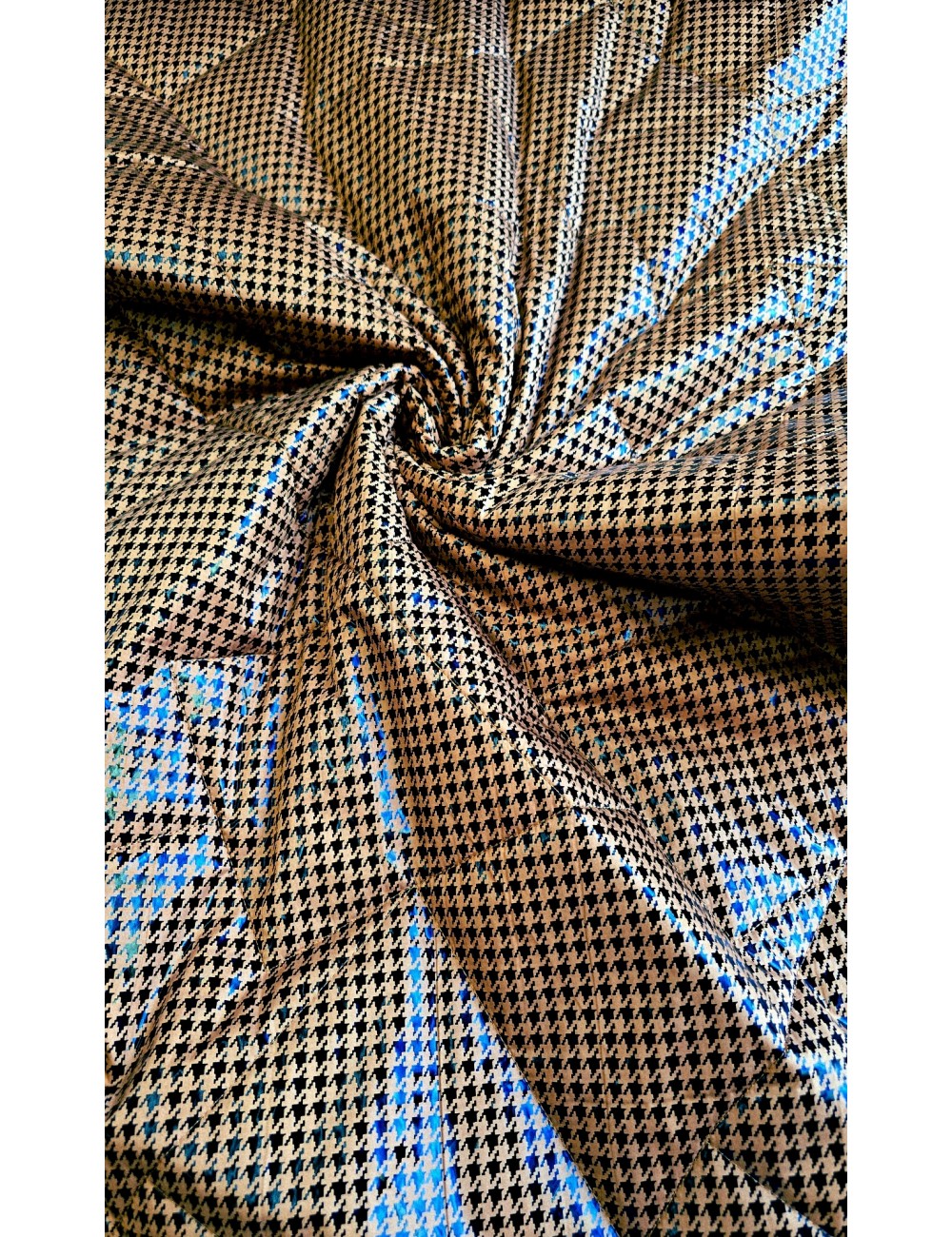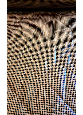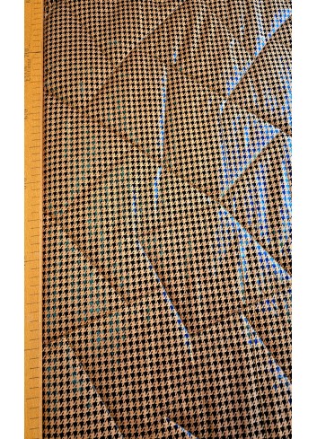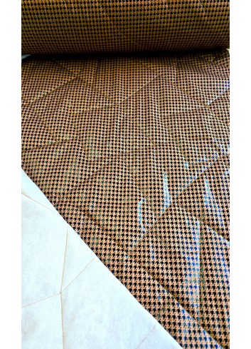 Elegantní dvouvrstvý prošev střední gramáže se vzorem drobné kohoutí stopy v černém provedení na camel základu. Lícová strana je z šusťákoviny s anti-drop úpravou, která zajišťuje větší ochranu proti vodě a znečištění. Rubová strana je zateplena rounem, zajišťující tepelnou pohodu. ( Tisk kohoutí stopy je bez jakýchkoliv defektů, nedotisky vzoru na fotografiích jsou jen optický klam v důsledku lesklé lícové strany).