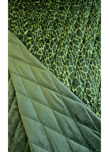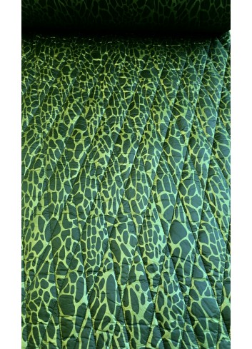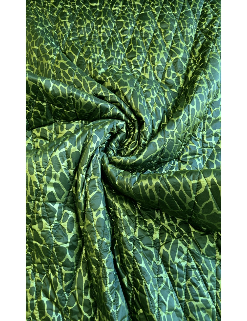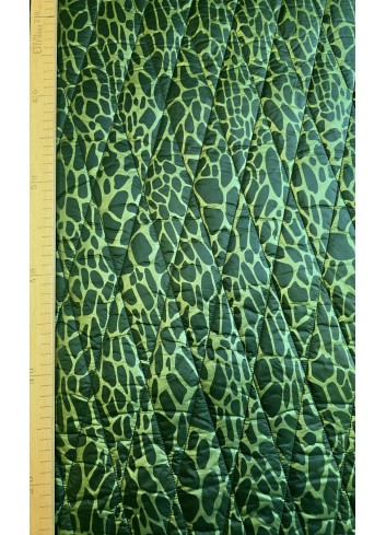 Luxusní italský třívrstvý prošev střední gramáže se zvířecím vzorem v zelené barvě. Lícová strana je z šusťákoviny s anti-drop úpravou, která zajišťuje větší ochranu proti vodě a znečištění. Střed je zateplen rounem a rubová strana je z kvalitní plyšové podšívky v barevném tónu jako lícová strana. Vyrobeno v Itálii, top kvalita.