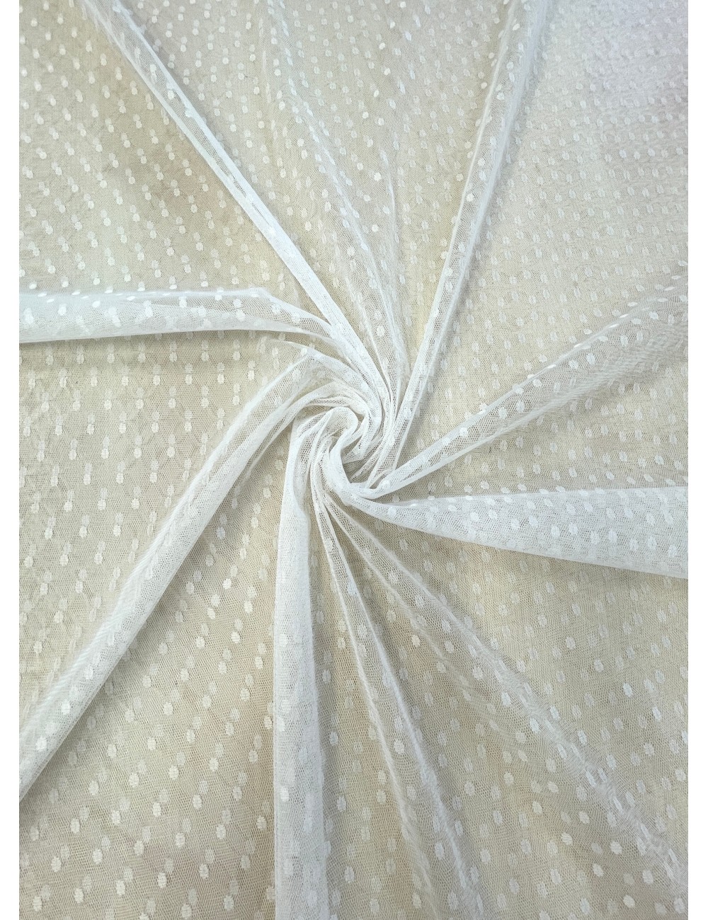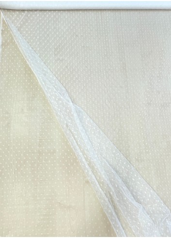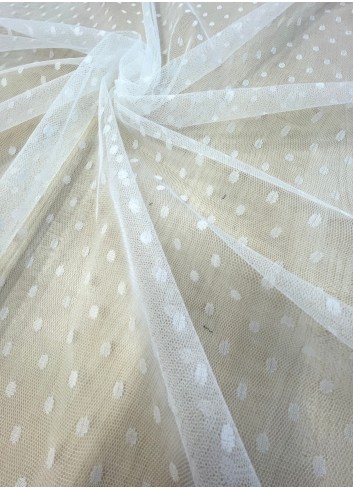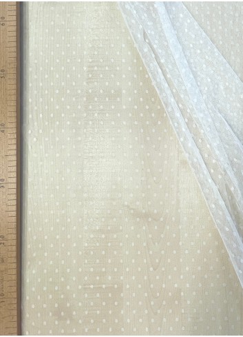 Jemný  ivory tyl s  puntíkem o velikosti cca 6 mm , příjemný na dotek, elastický vazbou.