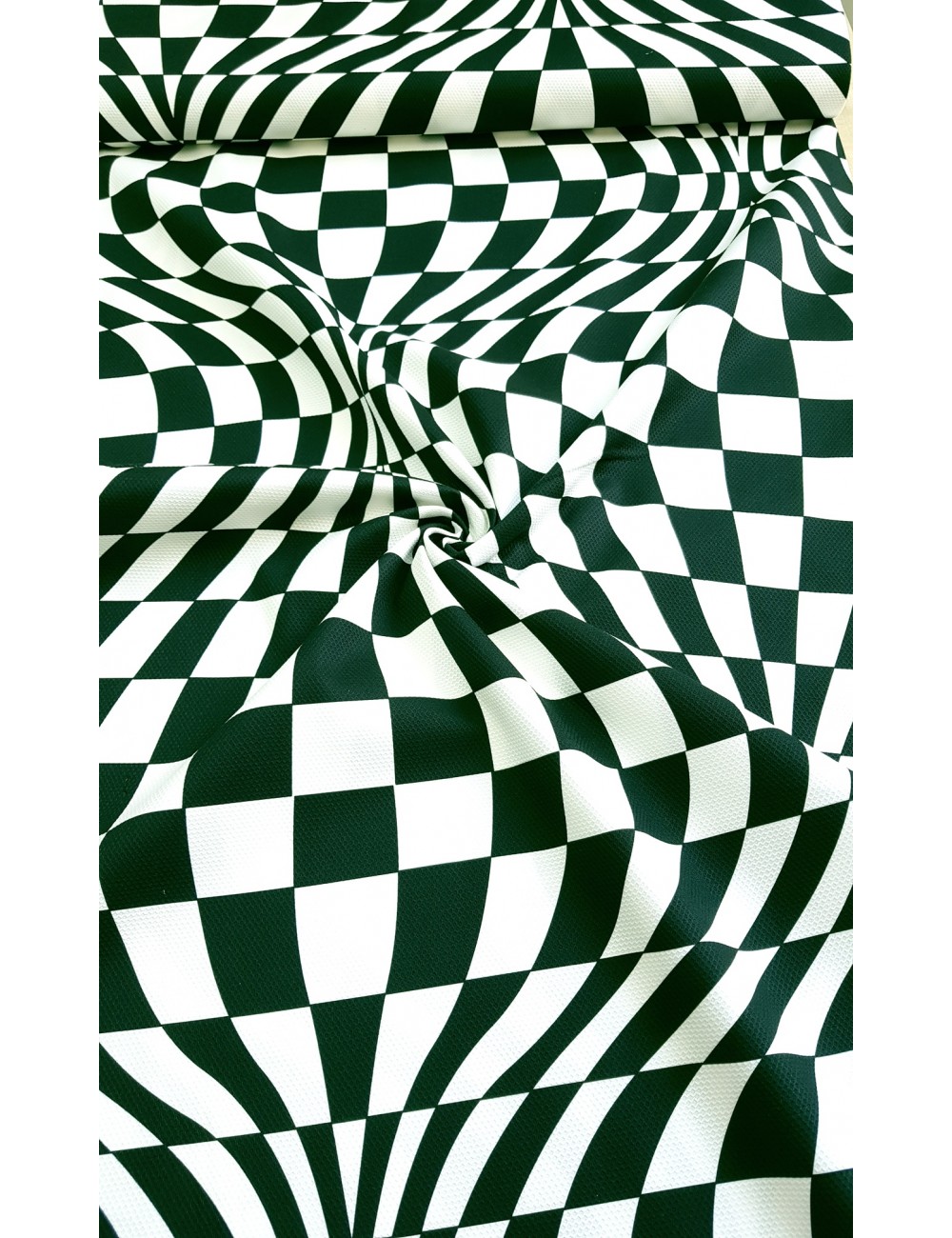 Bavlna piké střední gramáže s černobílým geometrickým vzorem ve stylu módní značky MAX MARA a výraznější povrchovou strukturou. Pevná, ale velice příjemná na dotek, elastická, vynikající kvalita. Bavlna z italské produkce, vynikající kvalita.