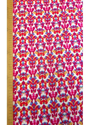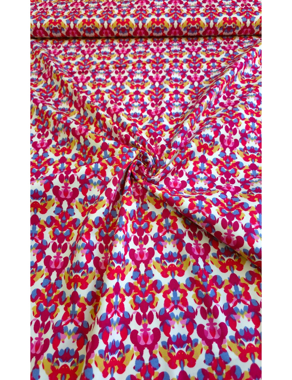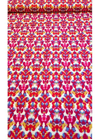 Krásná italská bavlna, střední gramáže, elastická, drobný vzor v červeno fuchsiovém provedení na bílém základu. Vyrobeno v Itálii, kvalita.