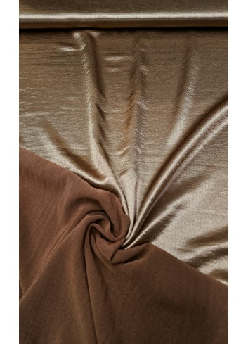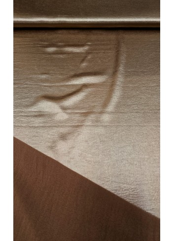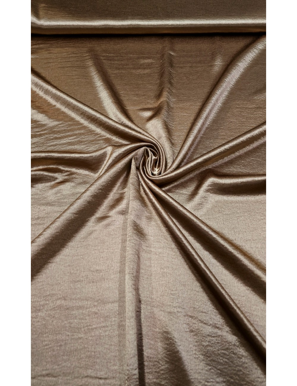 Pevnější satén s vysokým leskem ve skořicově zlaté barvě, velice splývavý, měkoučký a příjemný na nošení, vynikající gramáž, lícová strana s jemnou zrnitou strukturou, rubová strana v matu.