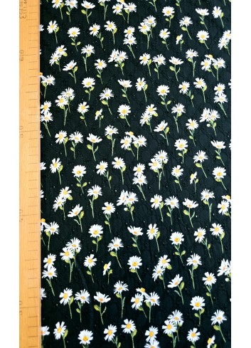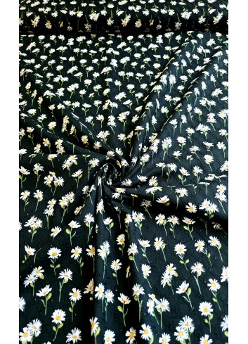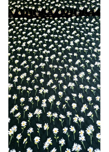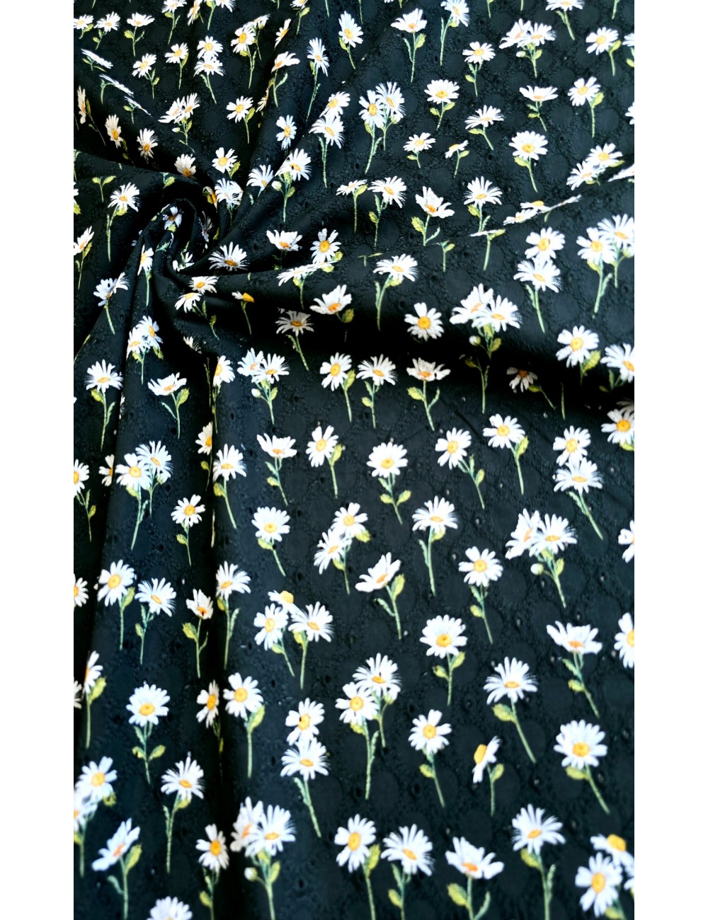 Krásná madeira Sangallo z italské produkce, lehounká a splývavá, romantický vzor sedmikrásky na černém základu . Vyrobeno v Itálii, top kvalita.
