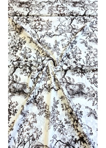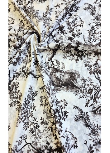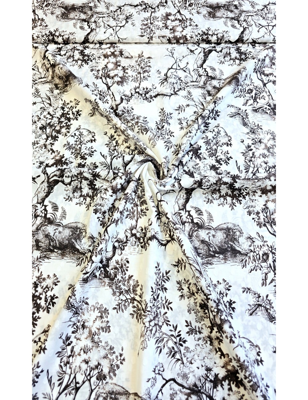Italské luxusní, krásné a efektní bavlněné fil coupé. Lehounká a splývavá bavlna, černý ikonický vzor toile de jouy ve stylu módní značky DIOR na ivory základu. Italská top kvalita.