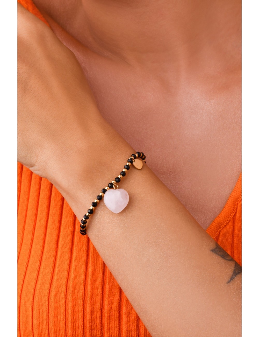 Náramek s přírodním růženínem, délka náramku 6 cm, elastický a velikost srdíčka cca 1,5 cm.