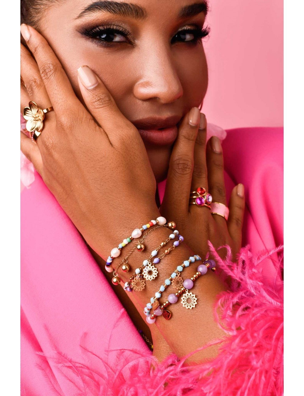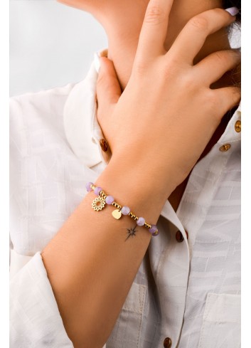 Náramek z přírodního barveného křemene, délka náramku 6 cm, elastický, velikost zlaté mandaly je cca 1,2 cm.
