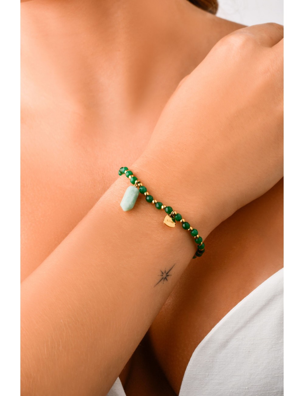 Náramek s přírodním amazonitem, délka náramku 6 cm,  elastický a velikost amazonitu 1.5 cm x 0,7 cm.