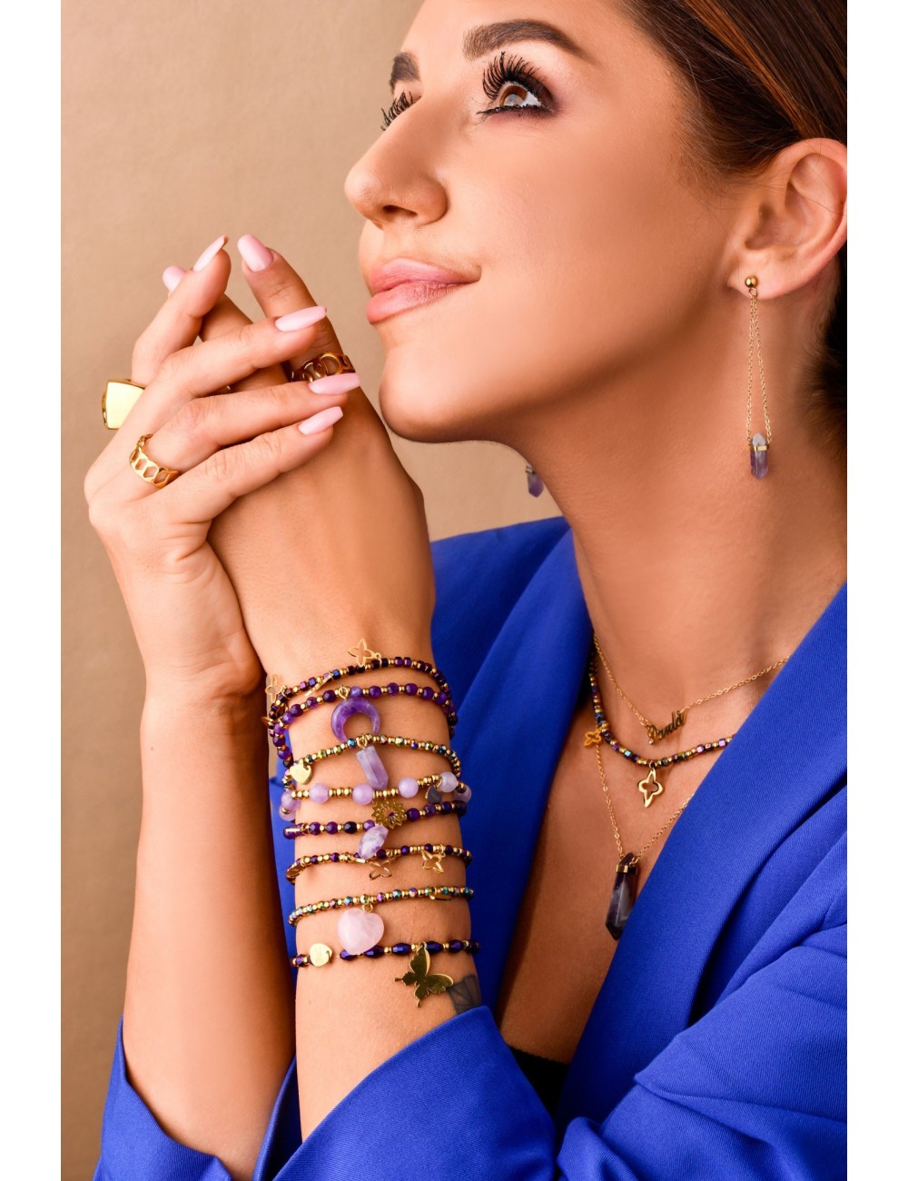 Náramek s přírodním ametystem, délka náramku 6 cm, elastický, velikost přívěsku je cca 1,5 cm.