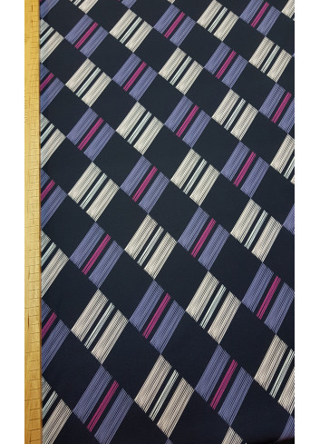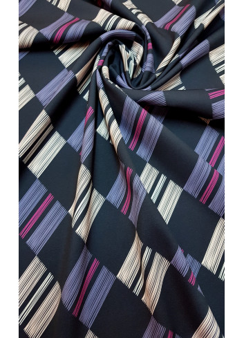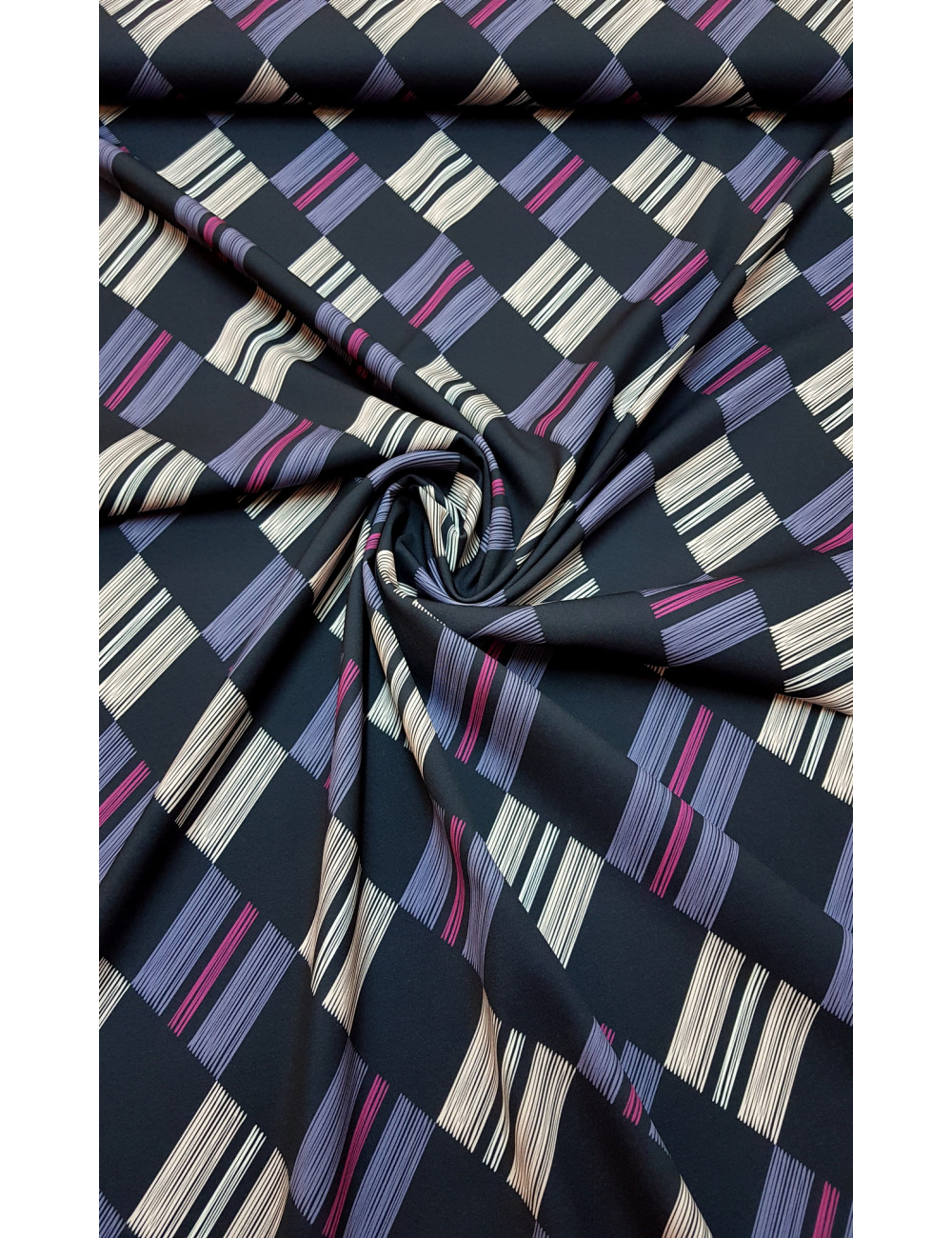 Elastická kostýmová látka střední gramáže ve směsi s viskózou, měkká, příjemná na dotek, elastická, nekrčí se, vzor barevné káro.