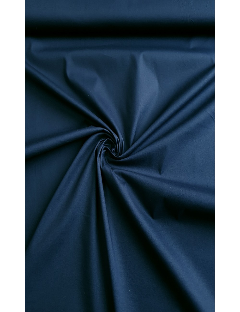 Tmavě modrý bavlněný popelín v kvalitě supreme, mírně elastický, příjemný přírodní materiál, snadno se udržuje, dobrá volba pro letní dny.