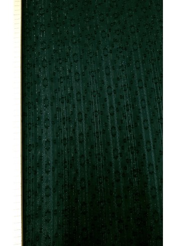 Černý šifón decentně protkávaný stříbrnou nitkou po délce látky a vystouplým drobným geometrickým vzorem s devoré efektem, splývavý krásný společenský materiál, mírně prosvítající, dobrá gramáž, příjemný na dotek.