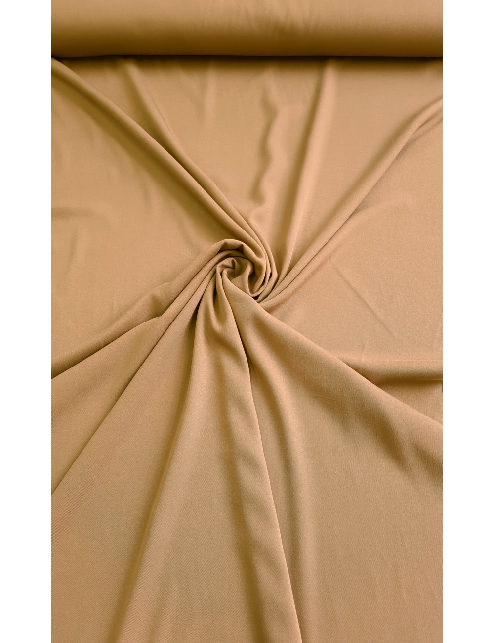Viskózová látka twill v hnědém nugátovém odstínu s jemným šikmým řádkováním na lícové straně, vzdušná, splývavá, velice příjemná k nošení, elastická, neprůsvitná, a navíc v perfektní gramáži.