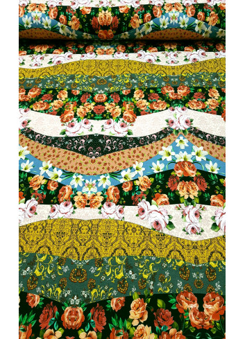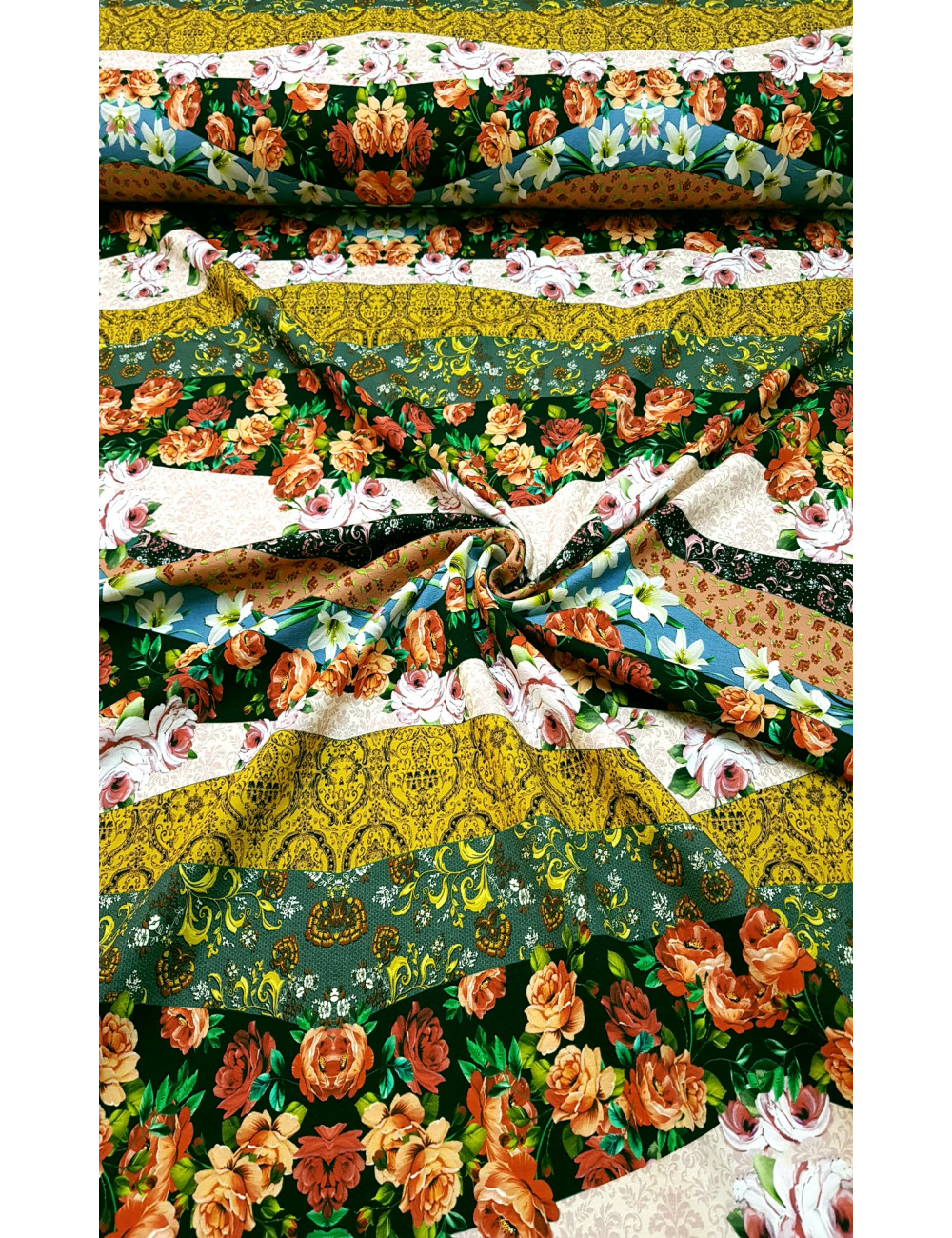 Vzorovaný elastický bavlněný úplet, teplákovina  nepočesaná v supreme kvalitě Oeko-tex standard 100, světově uznávané záruky kvality pro textil.  Příjemná na dotek, elastická, poctivá gramáž 250 gr a šíře 180cm ! Ostrý digitální tisk.