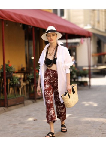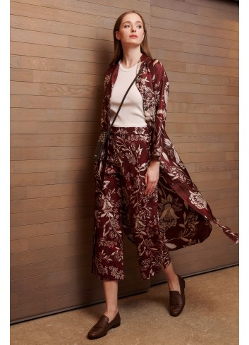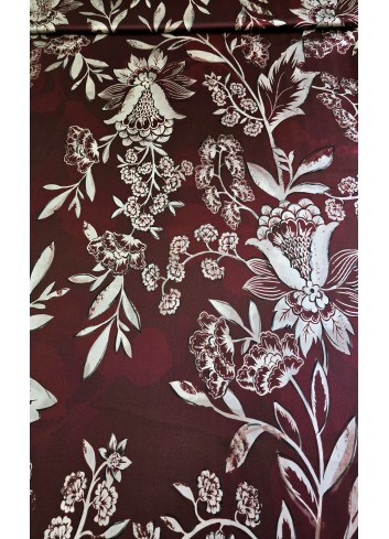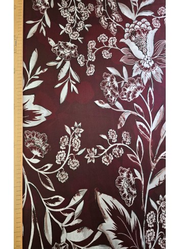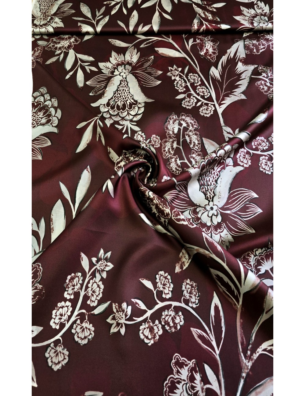 Krásný, luxusní hedvábný twill střední gramáže z italské produkce. Neprůsvitné, lehounké a splývavé, mírně elastické, elegantní květinový vzor na základu v bordó odstínech ve stylu kolekce italské módní značky MAX MARA . Vyrobeno v Itálii.