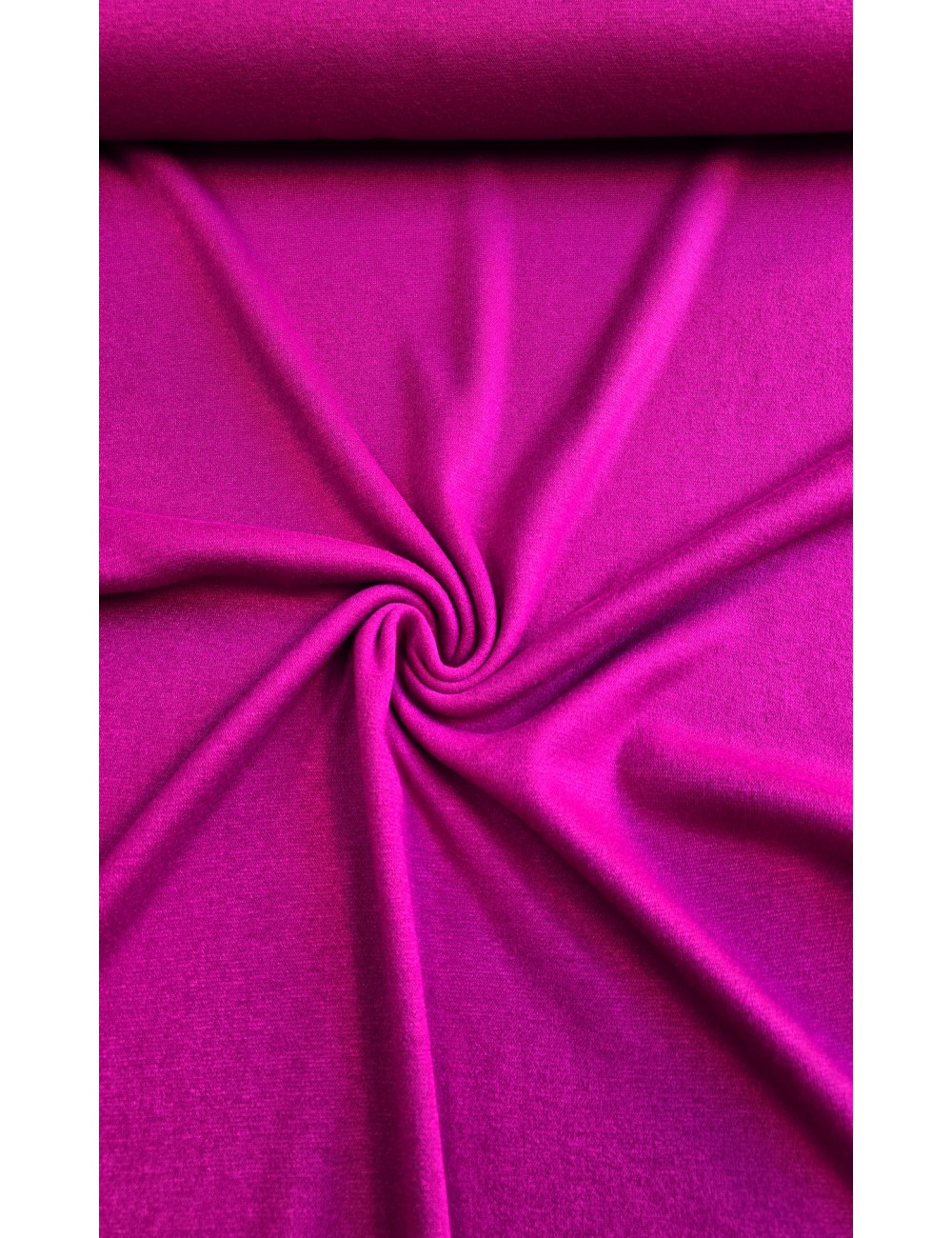 Italský úplet střední gramáže v krásné fuchsiové barvě, převážně z přírodních vláken. Velice měkký, hřejivý a příjemný na nošení, možno využít oboustranně. Z úpletu se velmi dobře šije, netřepí se a nevlní, dobrá gramáž.