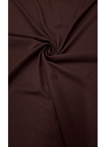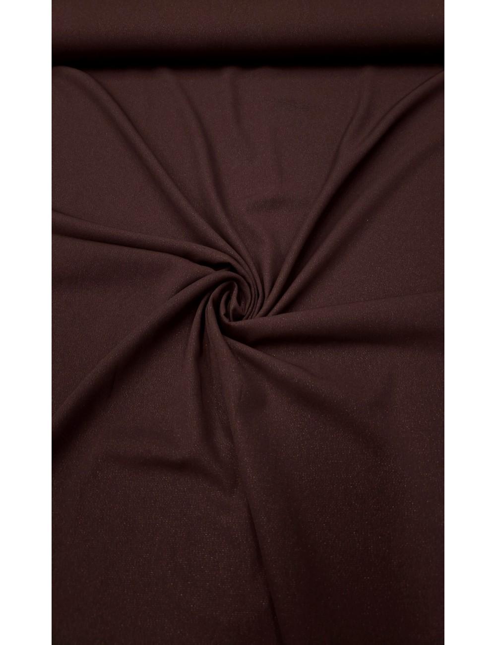 Lehká látka šatovka v čokoládově hnědé barvě, velice decentně protkávaná stříbrnou nitkou, krásně splývavá, mírně elastická vazbou, málo se krčí, elegantní vzhled.
