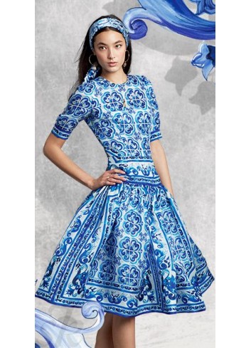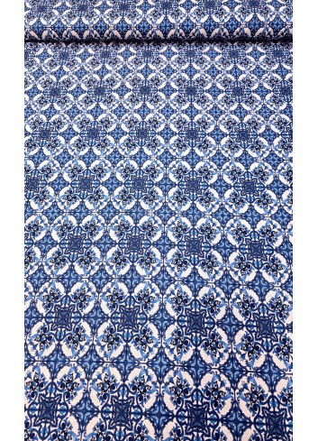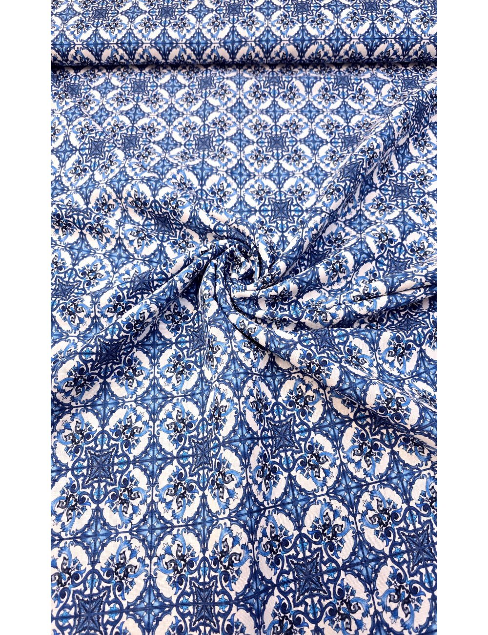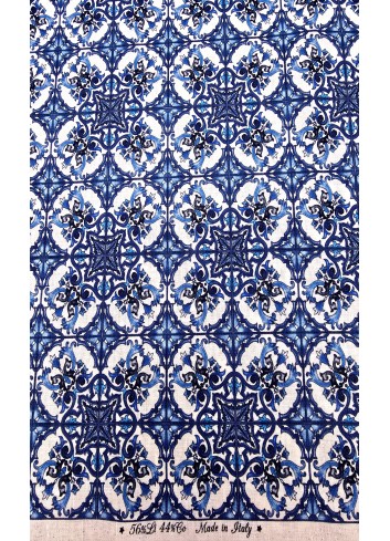 Krásný italský len ve směsi s bavlnou z produkce slavné italské firmy ALTA MODA, dodavatele látek renomovaným módním domům. Lehounká a splývavá, mírně elastická, ikonický vzor modro bílá majolica ve stylu módní značky DOLCE&GABBANA. Vyrobeno v Itálii, top kvalita, velice vzdušná a příjemná na nošení.