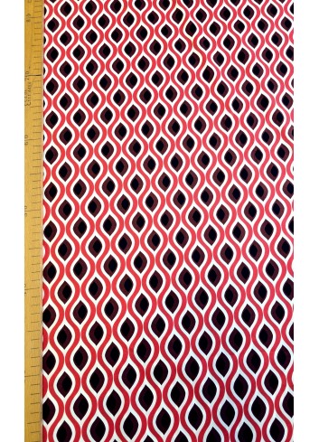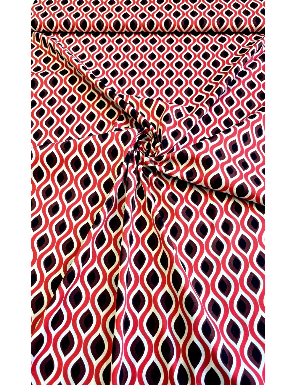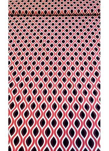 Italský bavlněný popelín s drobným pravidelným geometrickým vzorem v červeno bílém provedení. Pevná lehká látka, velice příjemná na dotek, elastická, vynikající kvalita, vyrobeno v Itálii.