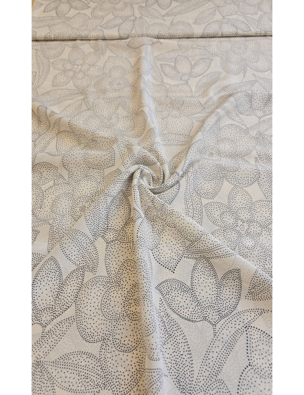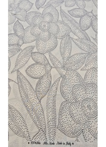 Krásný, luxusní hedvábný krepdešín střední gramáže z italské produkce firmy ALTA MODA. Lehounký, elastický vazbou a splývavý, nádherný květinový vzor v tečkovaném abstraktním provedení na ivory základu ve stylu francouzské módní značky CHANEL. Vyrobeno v Itálii.