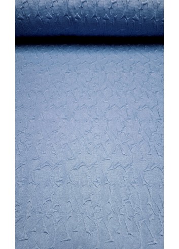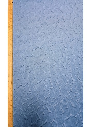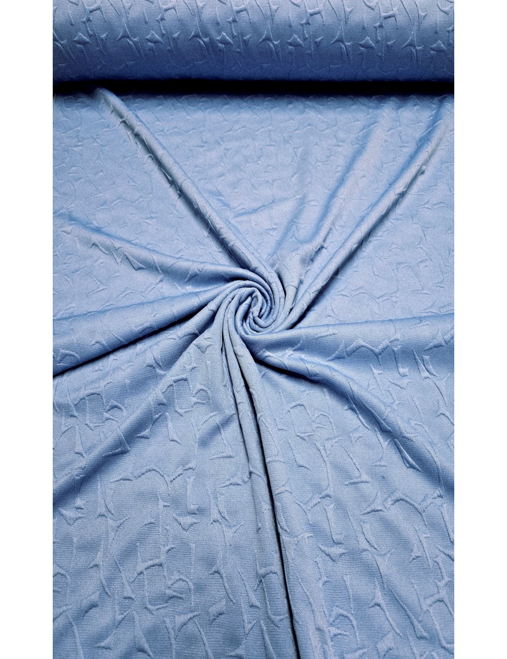 Kvalitní italský úplet ve světle modré barvě s vystouplým abstraktní vzorem. Příjemný na nošení, nekousavý, měkký, elastický, splývavý a nekrčivý, super šíře. Vynikající poměr kvality a ceny.