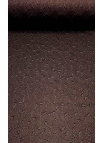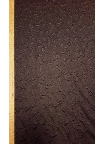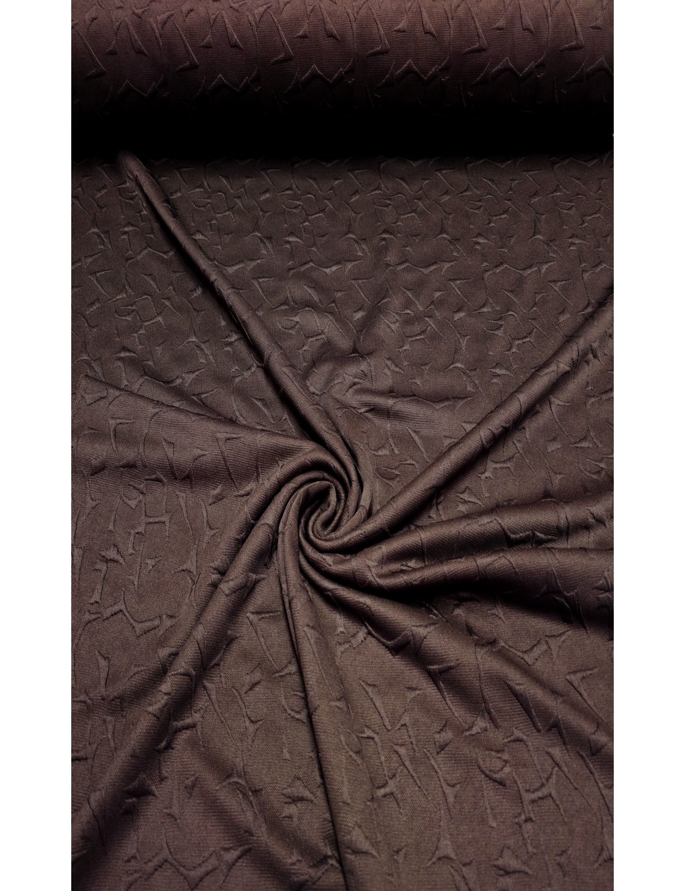 Kvalitní italský úplet v tmavě hnědé barvě s vystouplým abstraktní vzorem. Příjemný na nošení, nekousavý, měkký, elastický, splývavý a nekrčivý, super šíře. Vynikající poměr kvality a ceny.
