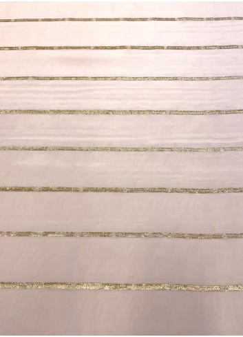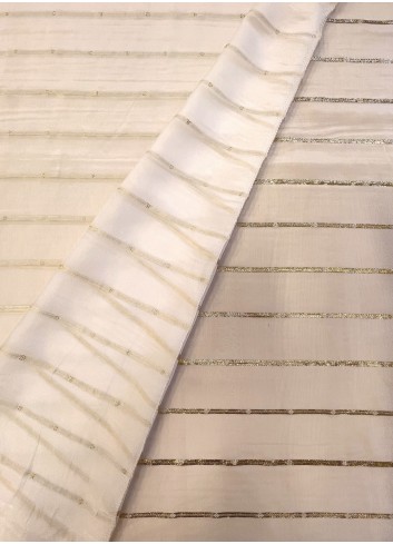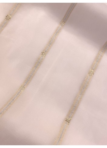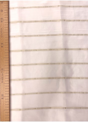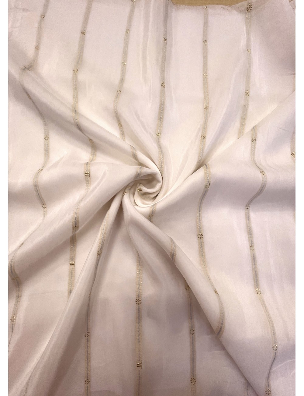 Luxusní šifónové hedvábí v ivory barvě s vytkávaným zlatým vzorem kytiček . Lze vyžít i rubovou stranu .Lehounké , splývavé a mírně průsvitné.