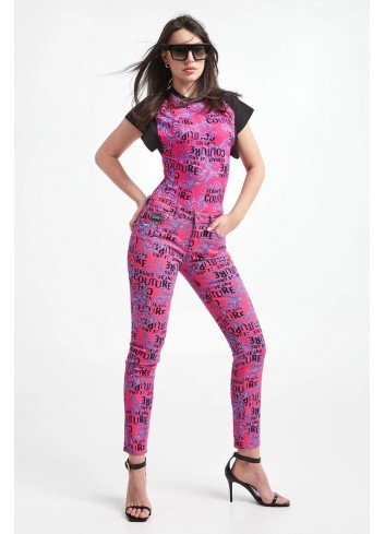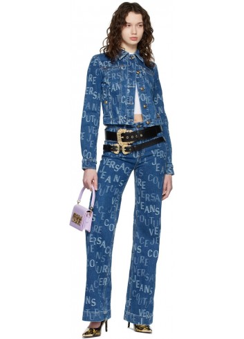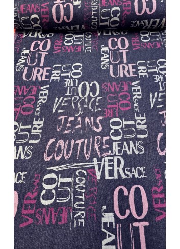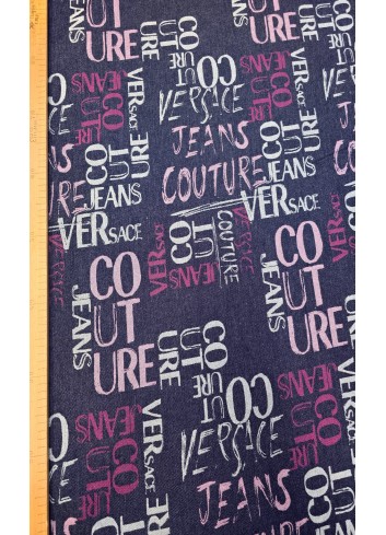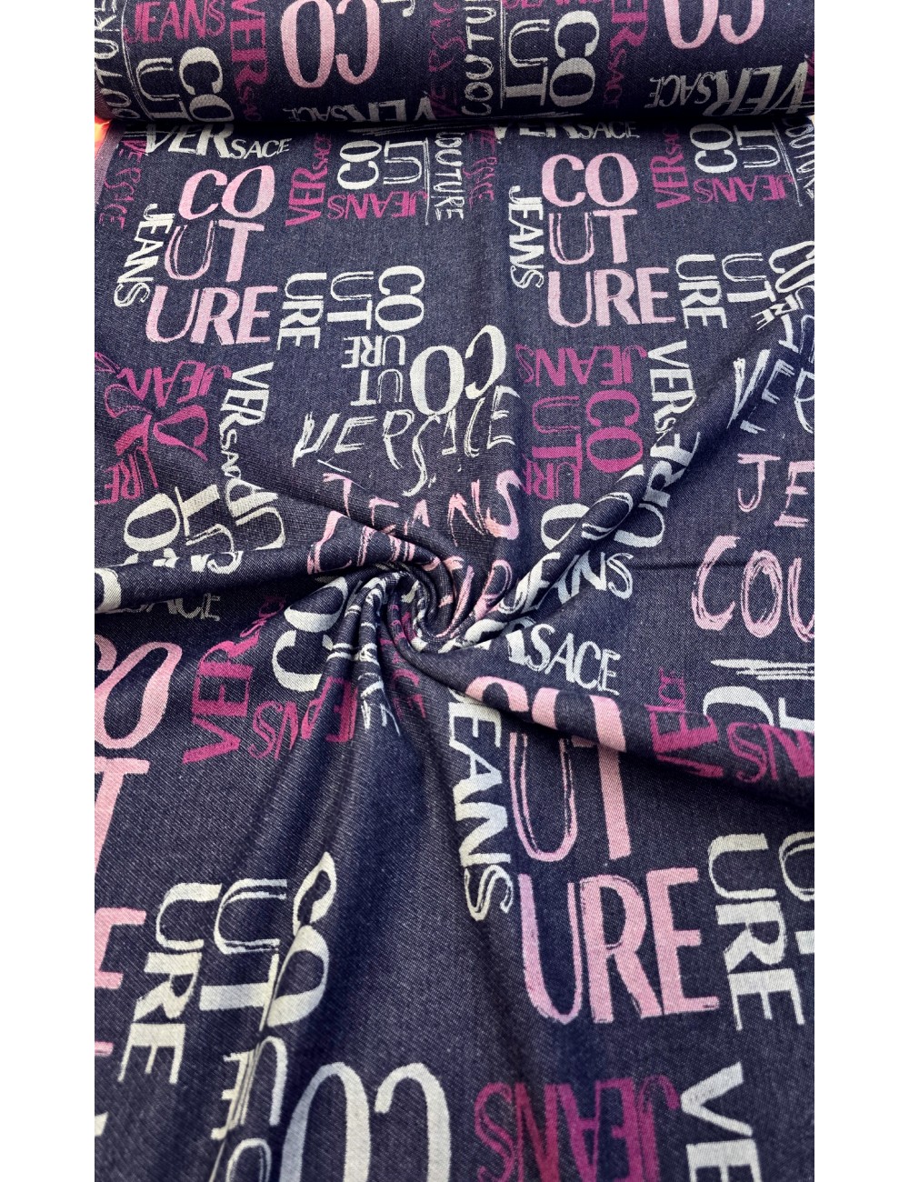 Krásný bavlněný denim z italské produkce, střední gramáž, elastický, monogramový barevný vzor ve stylu módní značky VERSACE JEANS COUTURE. Vyrobeno v Itálii, top kvalita.
