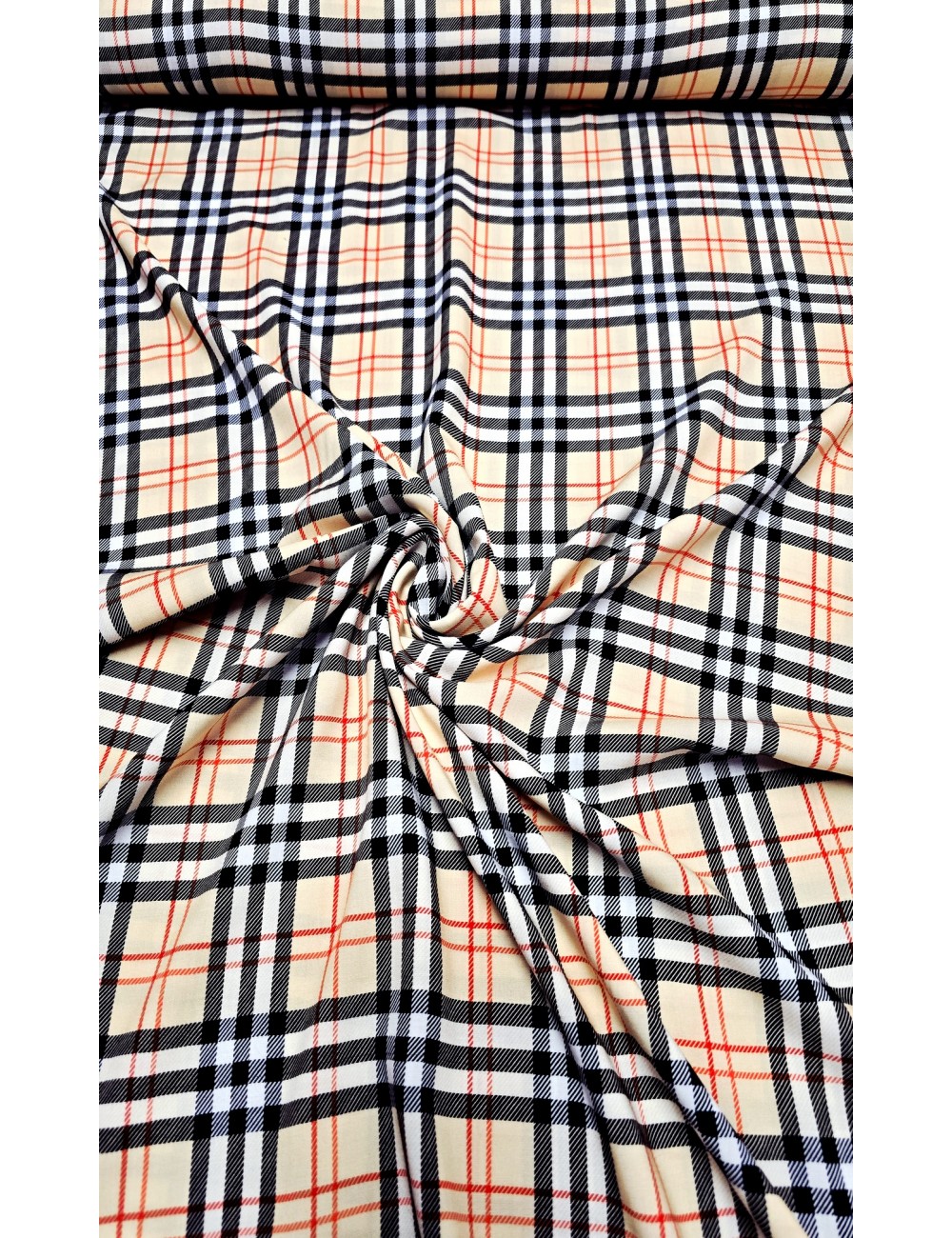 Italská luxusní elastická vlněná šatovka ve směsi s viskózou a vzorem kára ve stylu módní značky BURBERRY. Lehčí gramáže, velice příjemná na dotek, neocenitelná schopnost držet teplotu, nemačká se, splývavá a vzdušná.