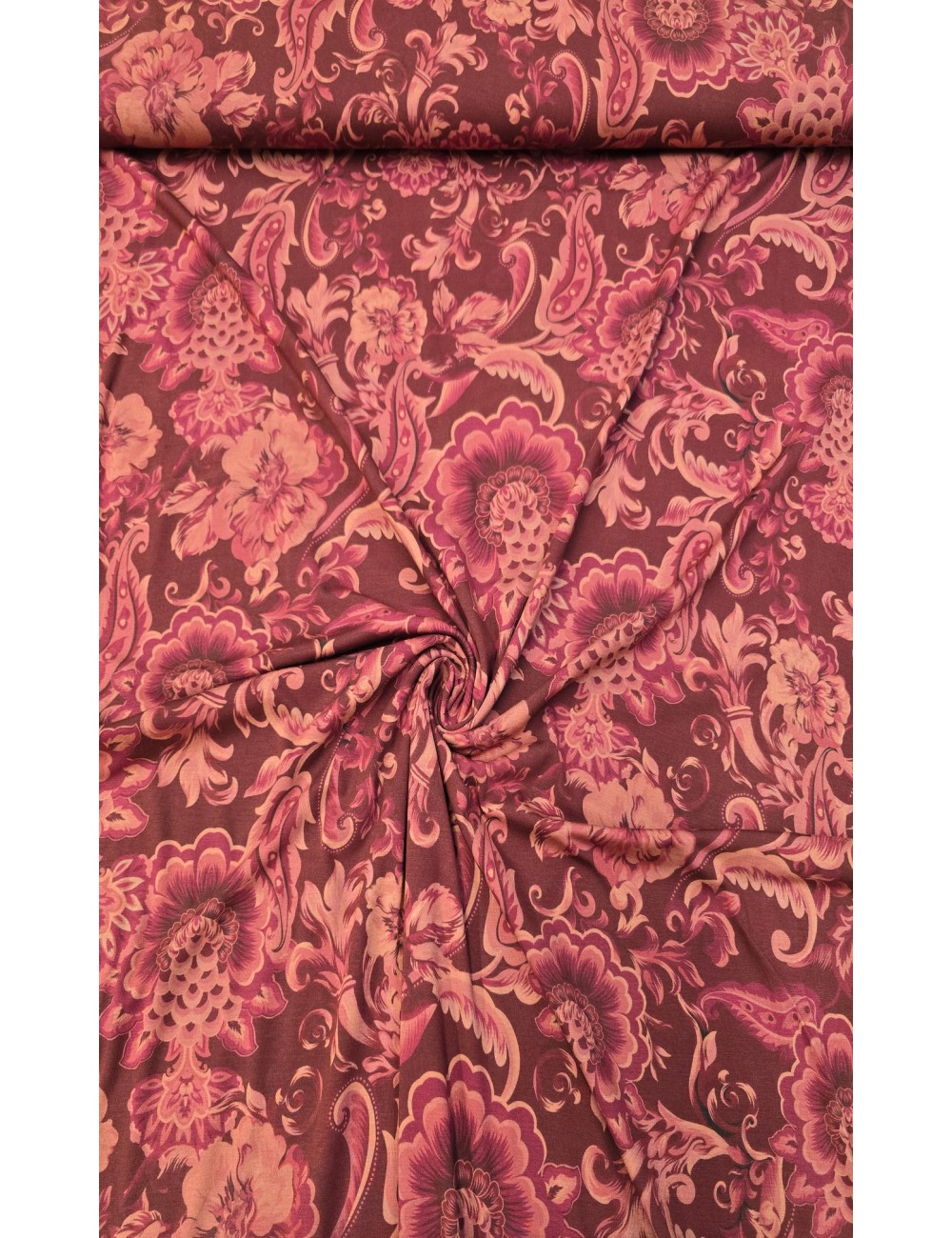 Středně silný viskózový úplet ve směsi s hedvábím se vzorem ve stylu módní značky ETRO, příjemný a hladký na dotek, vynikající kvalita, elastický. Vyrobeno v Itálii.
