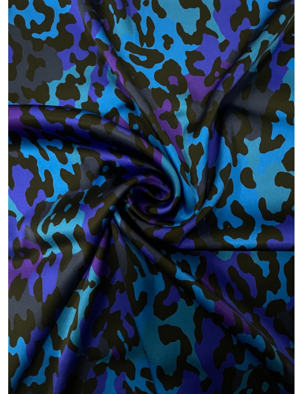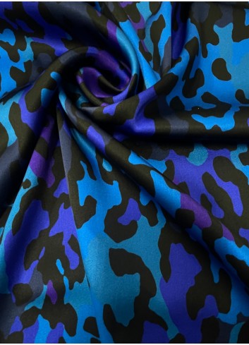 Krásné saténové hedvábí větší gramáže z italské produkce. Neprůsvitné, lehounké a splývavé, krásný barevný zvířecí motiv v modrofialových tónech.