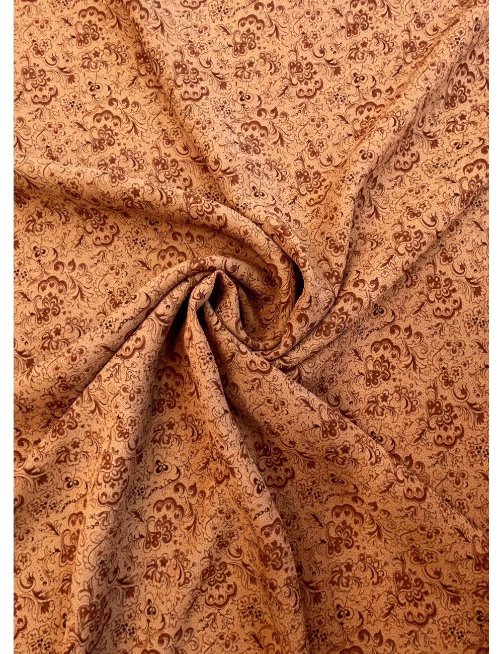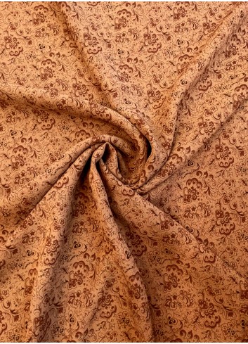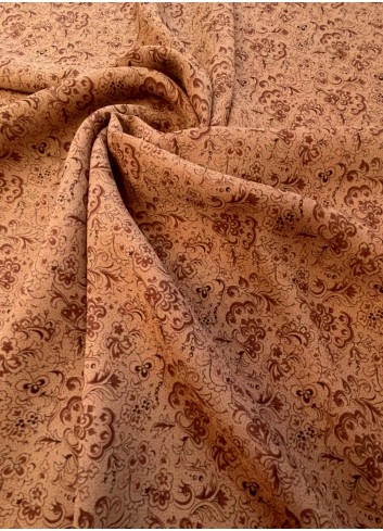 Elegantní žoržet s čokoládovým florálním vzorem na olivově hnědém základu, splývavý , lehoučký, vzdušný a příjemný na dotek , téměř neprůsvitný ,