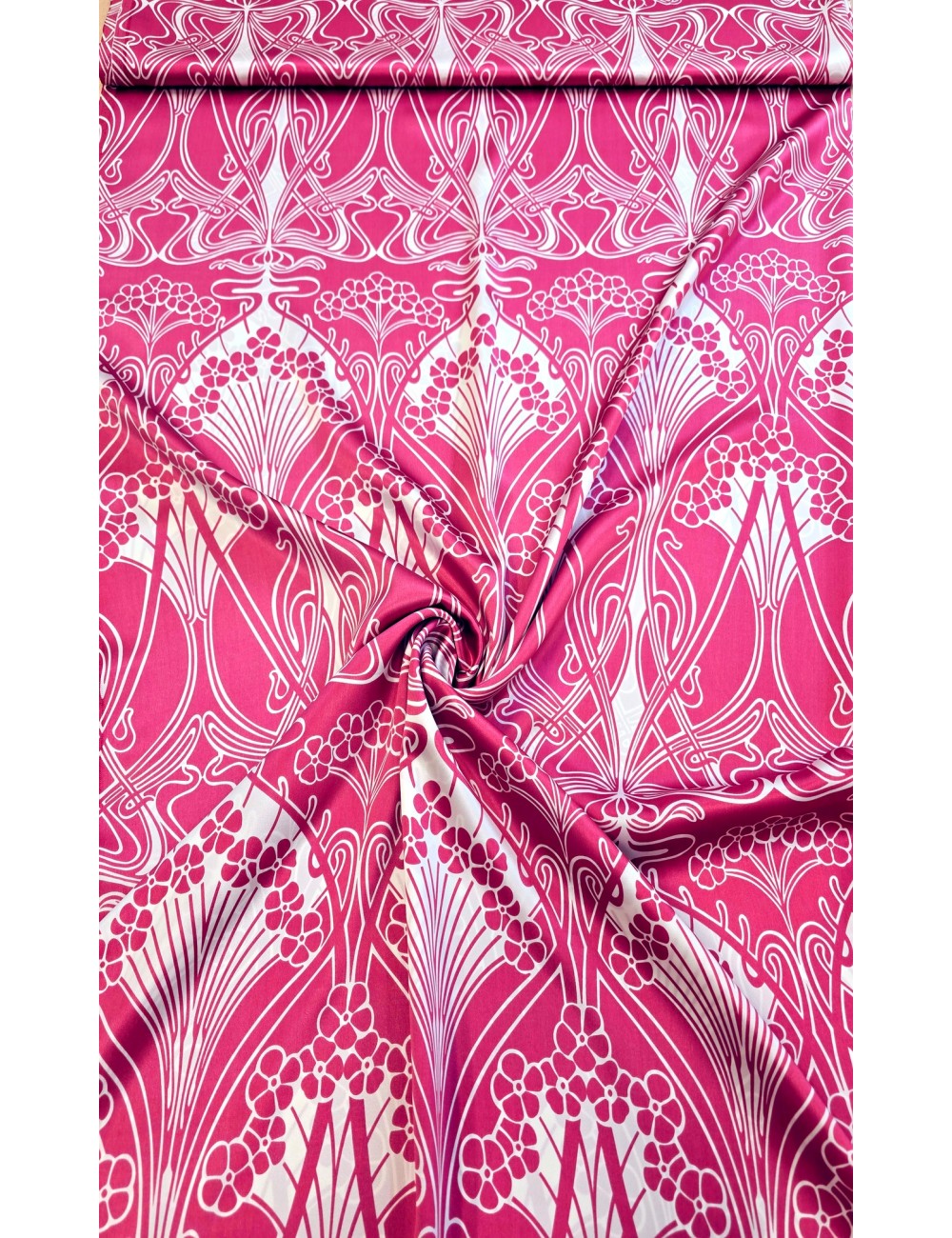 SATÉNOVÉ HEDVÁBÍ KVĚTINOVO ABSTRAKTNÍ VZOR FUCHSIE