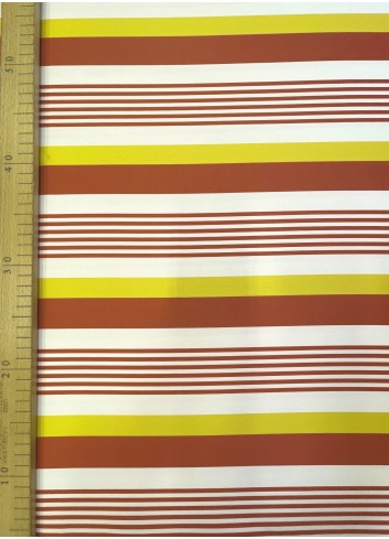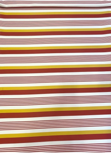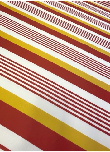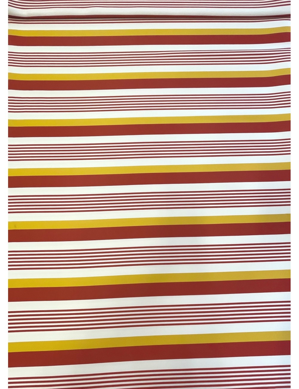 Krásné portugalské pruhované mikado v barvách červené a neapolské žluté na bílém základu. Mikado je pevné keprové vazby bez lycry , velké gramáže s decentním elegantním leskem. Tento vzor lze kombinovat s hedvábným saténem v identickém provedeni viz. poslední fofo (kód 6370