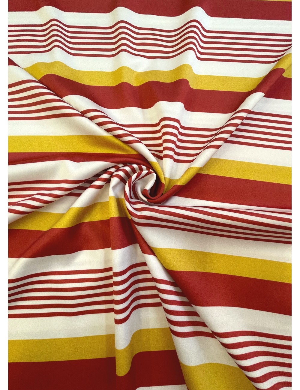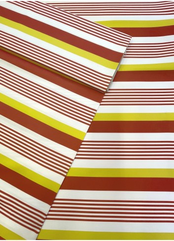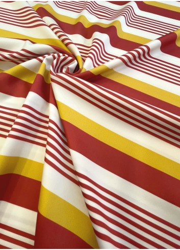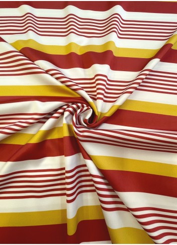 Krásné portugalské saténové hedvábí v barvách červené a neapolské žluté na bílém základu. Jemný , splývavý a neprůsvitný materiál který lehce pruží. Tento vzor lze kombinovat s mikádem v identickém provedeni viz. poslední fofo (kód 6369