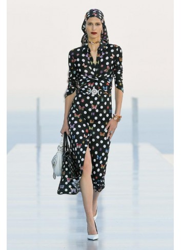 ITALSKÉ SMĚSOVÉ HEDVÁBÍ STYL VERSACE PUNTÍK DUA LIPA HNĚDÉ