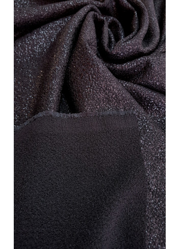 Krásná společenská látka, žoržetové vazby střední gramáže, elastická, příjemná na dotyk, neprůsvitná s třpytkami na lícové straně nanášené technologií za tepla, tudíž neodpadávají z látky.