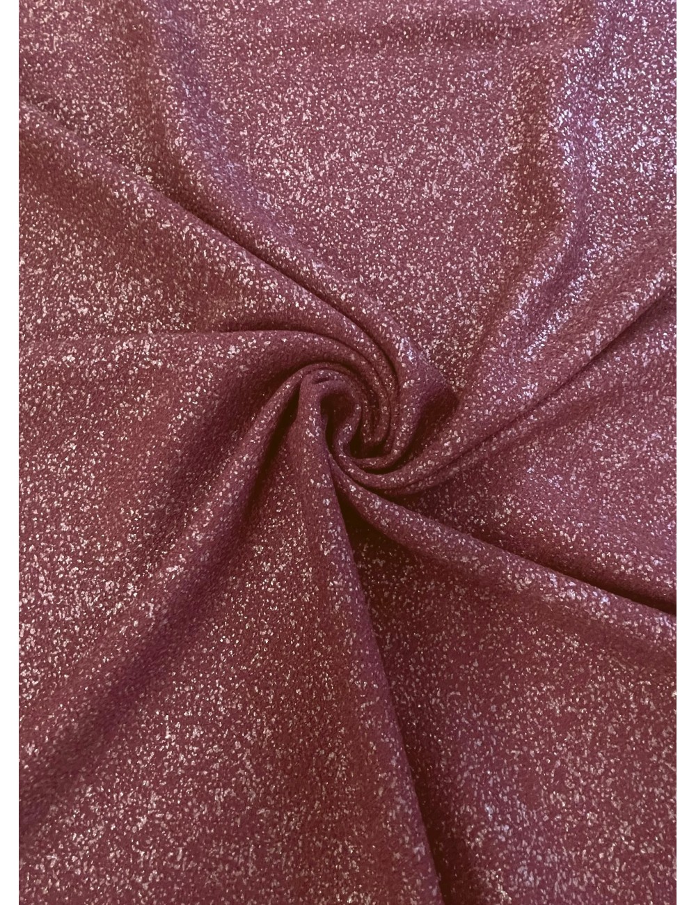 Krásná společenská látka , žoržetové vazby , větší gramáže v tmavě třešňovém odstínu s čirými glitry. Pružná vazbou, příjemná na dotyk, neprůsvitná a splývává.