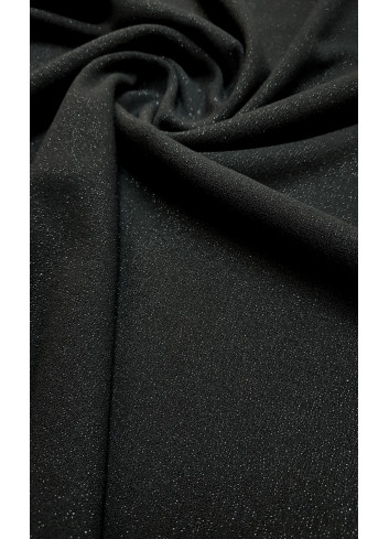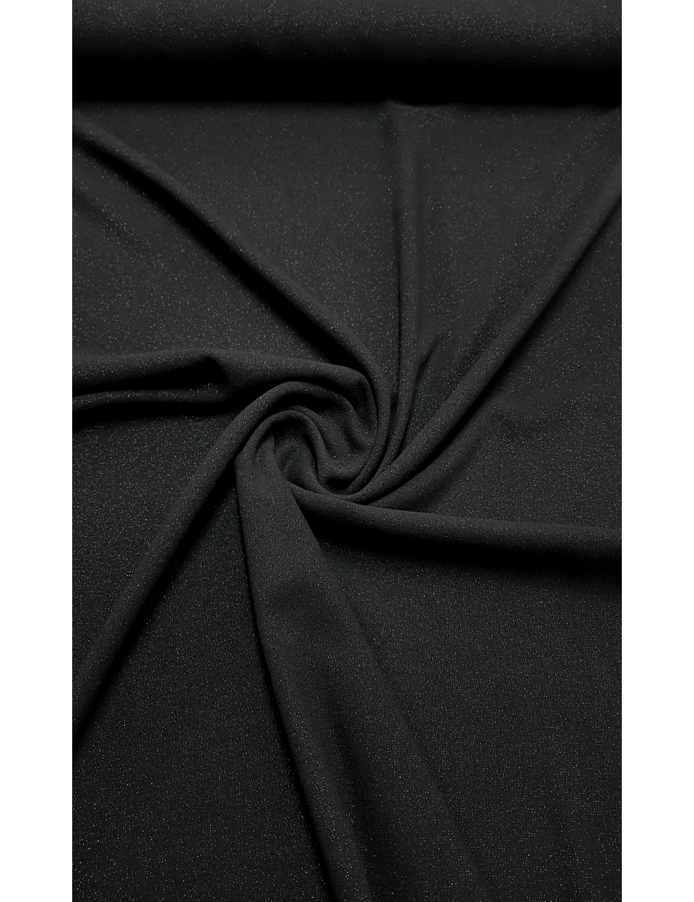 Krásná černá kostýmovka střední gramáže elastická, splývavá s větším podílem přírodní viskózy, tudíž velice příjemná na dotek s decentně vetkávaným lurexovým vláknem.