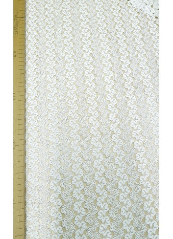 Lehoučká a elastická vazbou krajka v lomené bílé barvě s drobným květinovým vzorem, velice příjemná na dotek, vynikající poměr ceny a kvality.