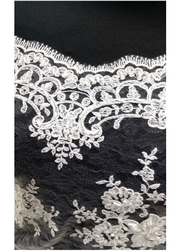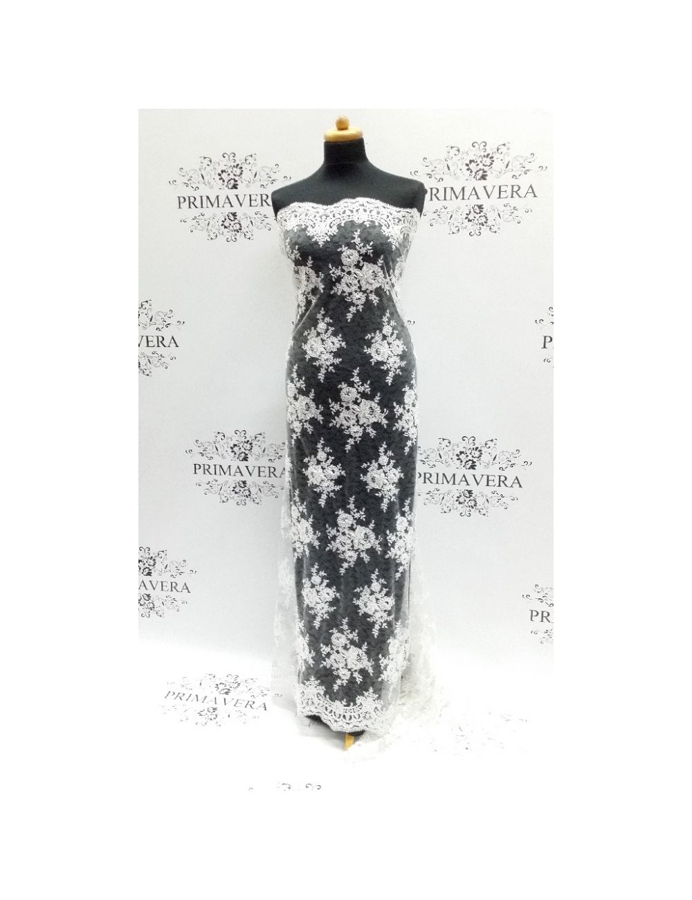 Luxusní krajka s drobným vyšívaným květinovým motivem, bohatě zdobená flitry, kamínky a perličkami Preciossa.
