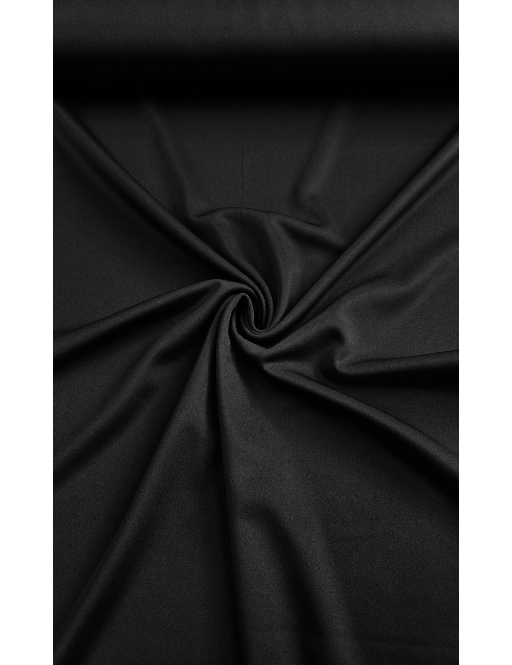 Úplet brush v černé barvě je střední gramáže, měkký s větším obsahem lycry, perfektně elastický a hutný, jemně broušený lícový povrch s matným leskem. Nekrčí se, dobře drží tvar, snadno se udržuje a hezky tvaruje postavu.
