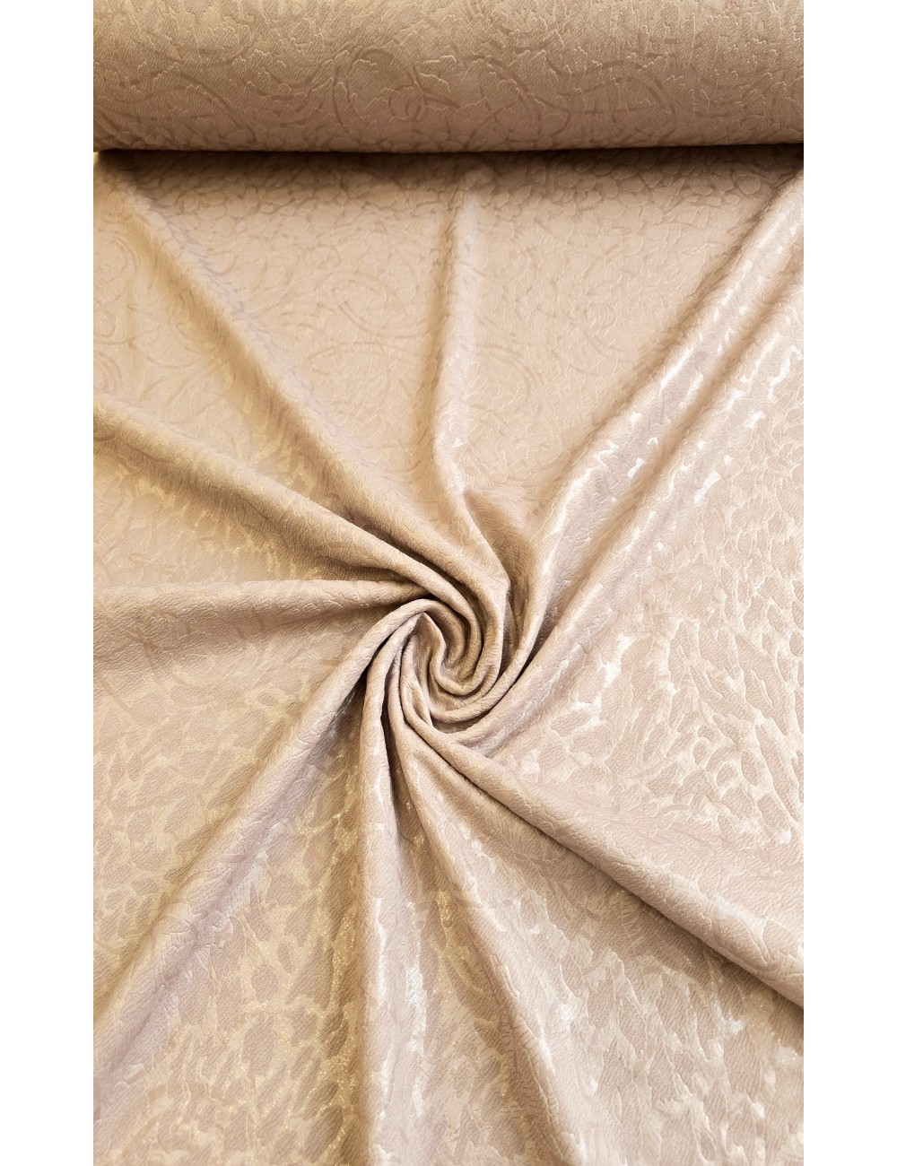 Italský úplet s animal vzorem v béžovo kapučínovém provedení s lehoučkým leskem na lícové straně je střední gramáže, měkký, elastický, dobře drží tvar, snadno se udržuje a hezky tvaruje postavu.