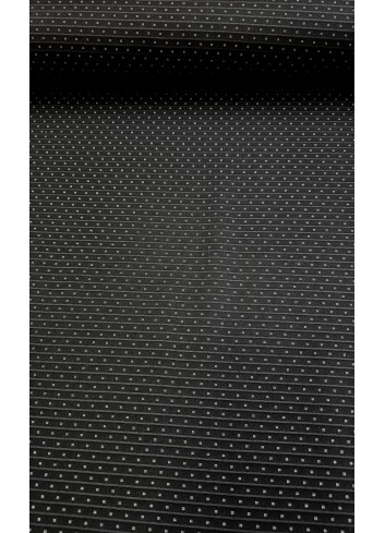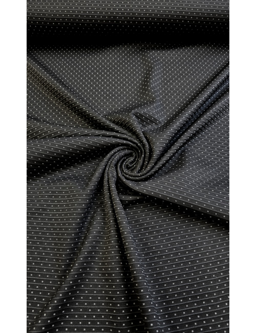 Elastický úplet punto milano v novém provedení, střední gramáže s elegantním droboučkým bílým vzorem a jemným proužkem na černém základu. Měkký a poddajný úplet, příjemný na dotek, elastický, splývavý a nekrčivý. Italská kvalita.