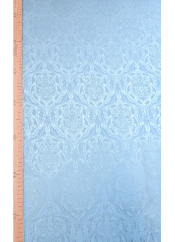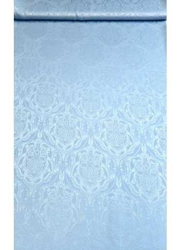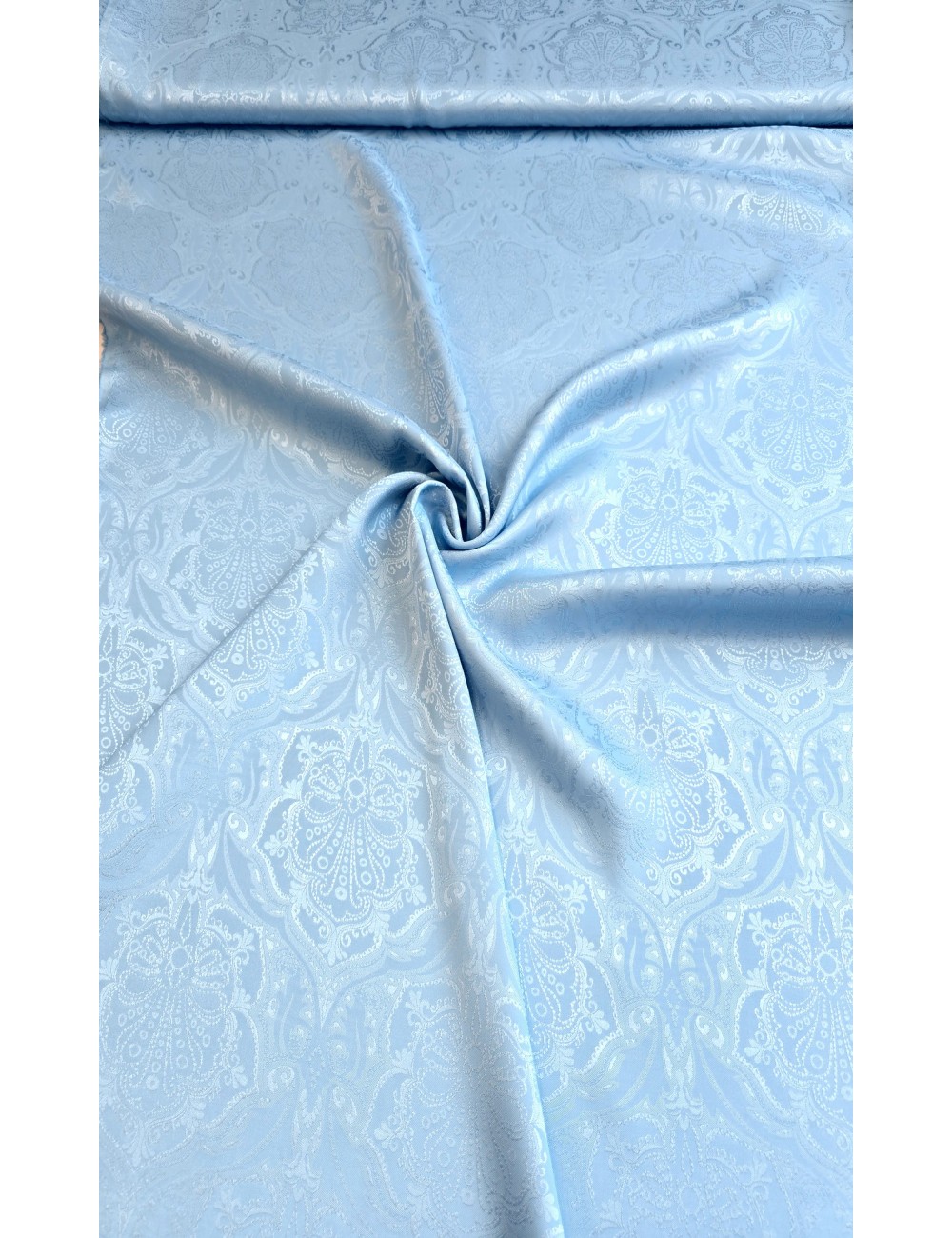 Italská žakárová šatovka menší gramáže s abstraktním vzorem v bledě modrém provedení, příjemná na dotek, lehoučká, měkká a splývavá, elegantní.