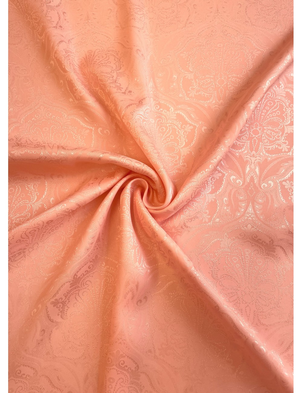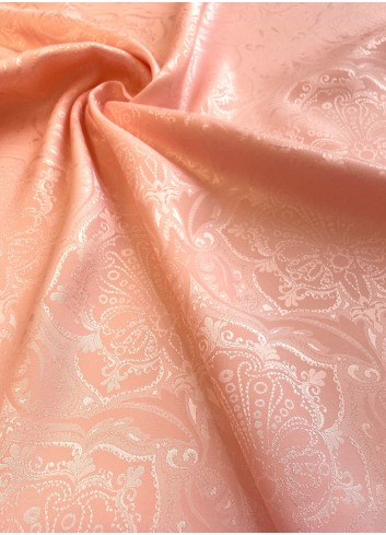 Italská žakárová šatovka menší gramáže s abstraktním vzorem ve světle lososovém modrém provedení, příjemná na dotek, lehoučká, měkká a splývavá, elegantní.